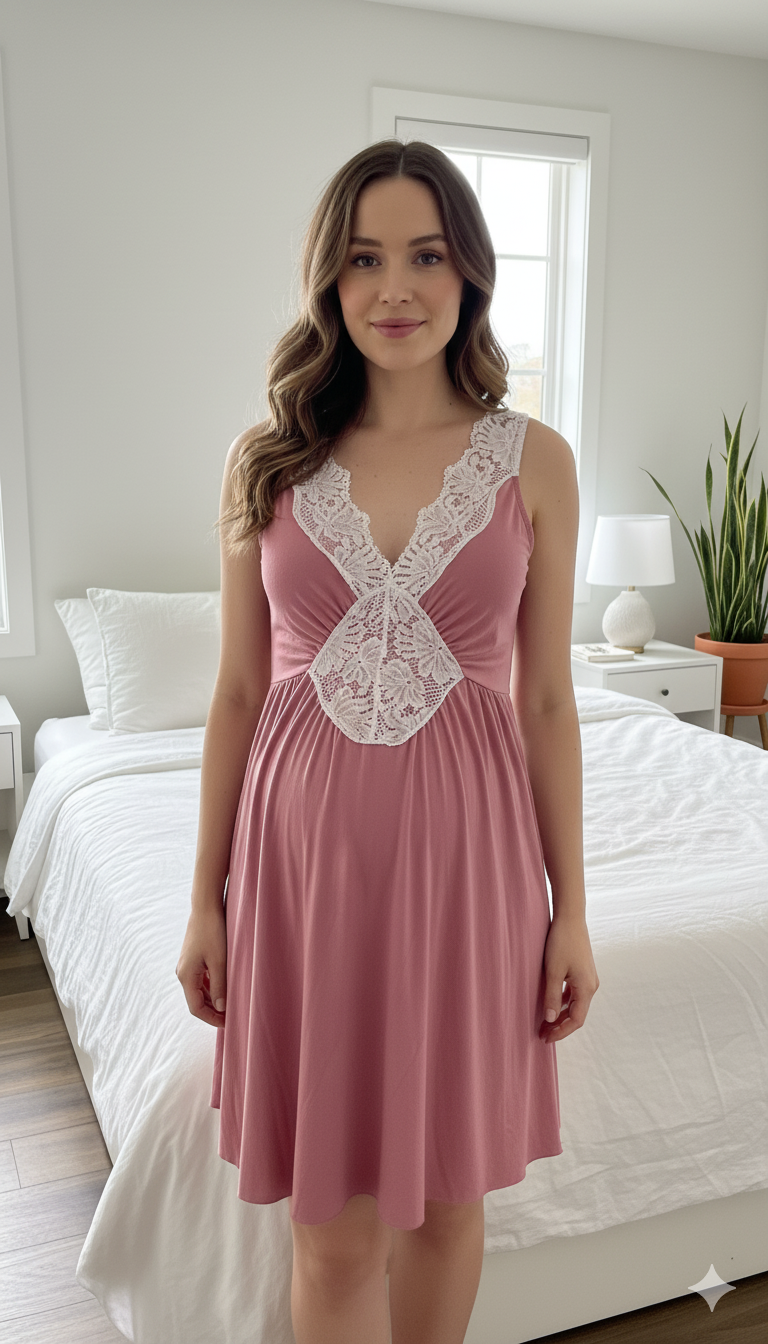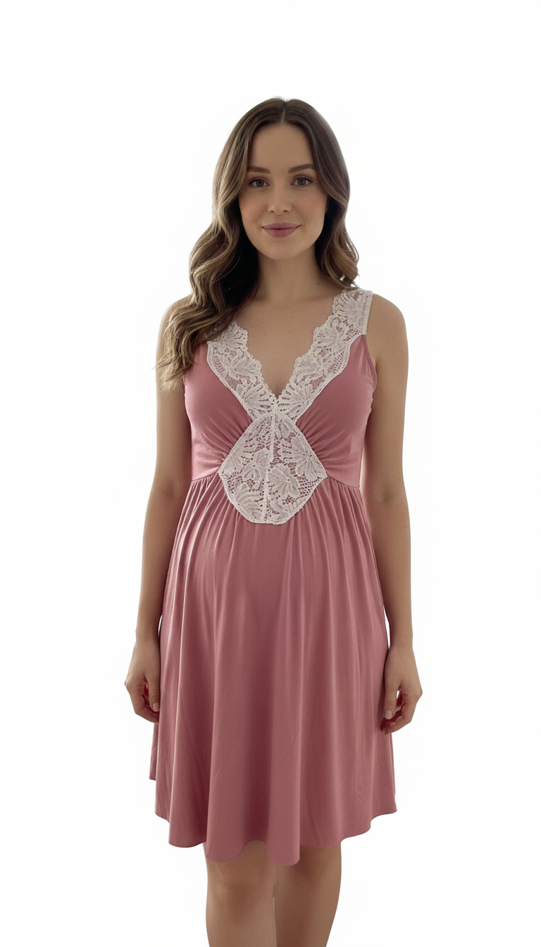 Camison Encaje MangaCero, Sistema Lactancia, Algodon, PaloRosa