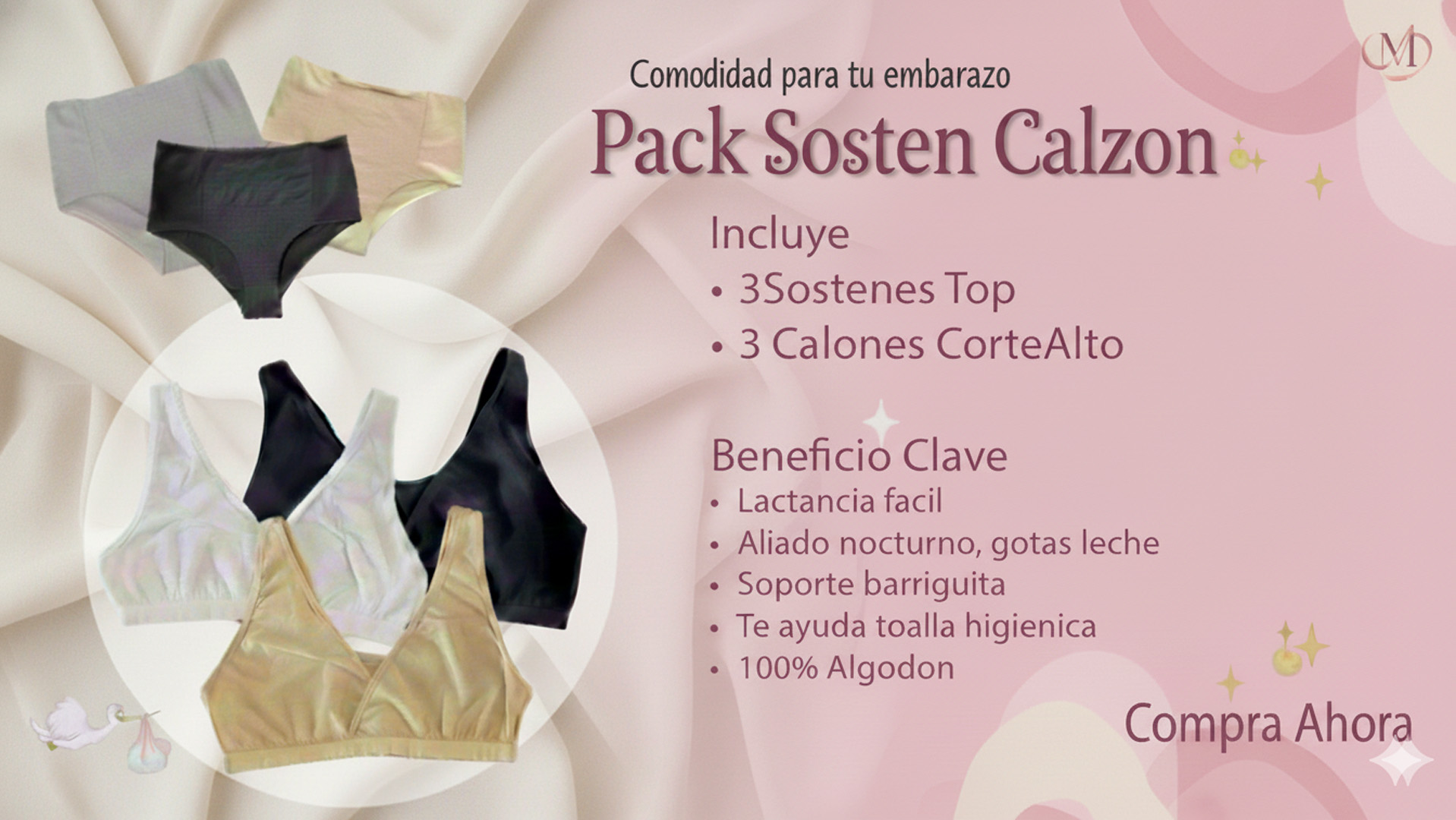 El Calzón Corte Alto es ideal para el periodo posparto, brindando la comodidad necesaria en ese momento tan delicado. Por otro lado, el Sosten Top es esencial para su uso nocturno, ayudándonos a mantenernos secos durante toda la noche. Al ser fabricados sin broches, ofrecen la facilidad de dormir sin preocupaciones.