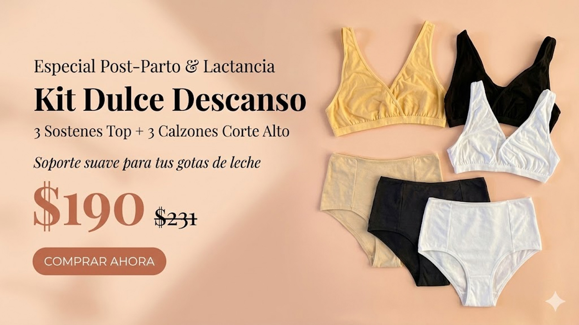 El Calzón Corte Alto es ideal para el periodo posparto, tiene doble tela en la barriguita que permite su mejor sujeción. Por otro lado, el Sosten Top es esencial para su uso nocturno, ayudándonos a mantenernos secos durante toda la noche y ayudarnos con el peso creciente de los senos. Al ser fabricados sin broches, ofrecen la facilidad de dormir sin preocupaciones.