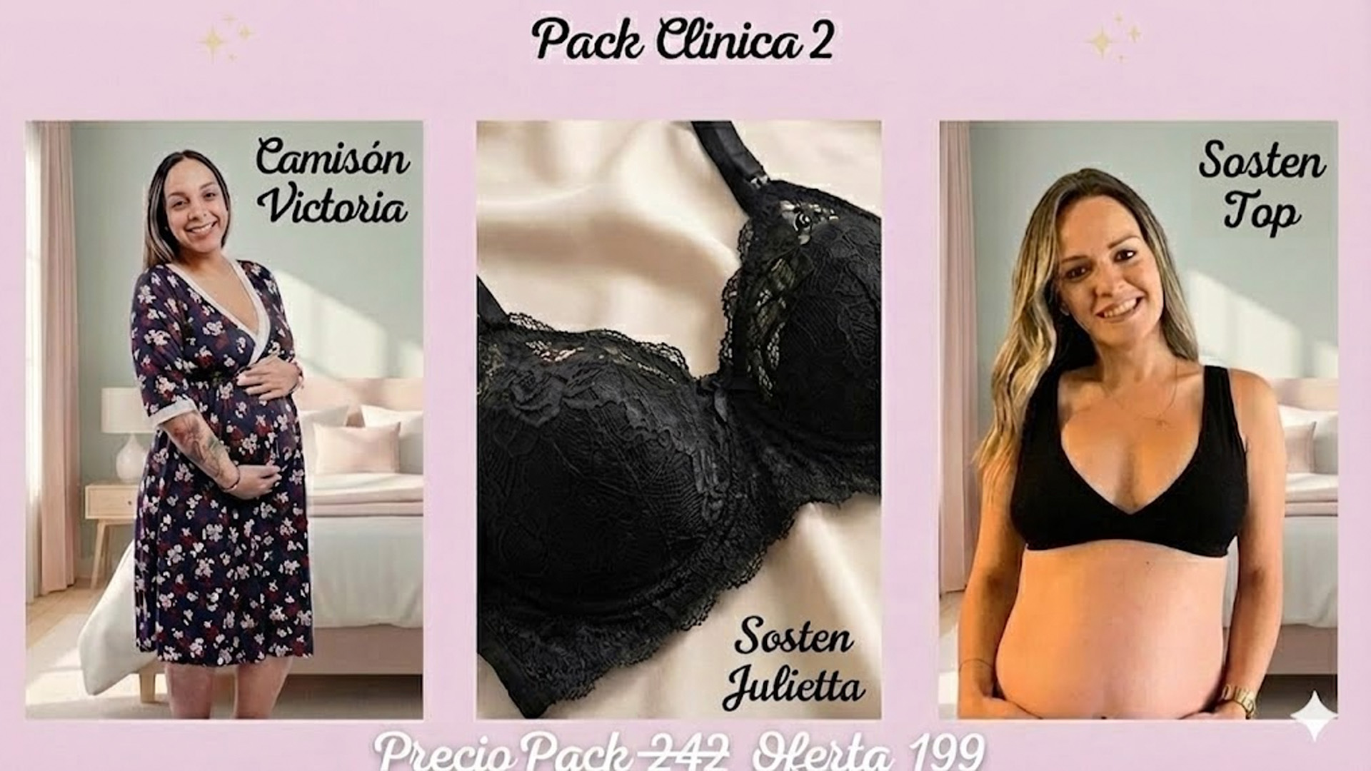 Pack Clinica 2: Camison Manga TresCuarto, Sosten Julietta y Sosten Top