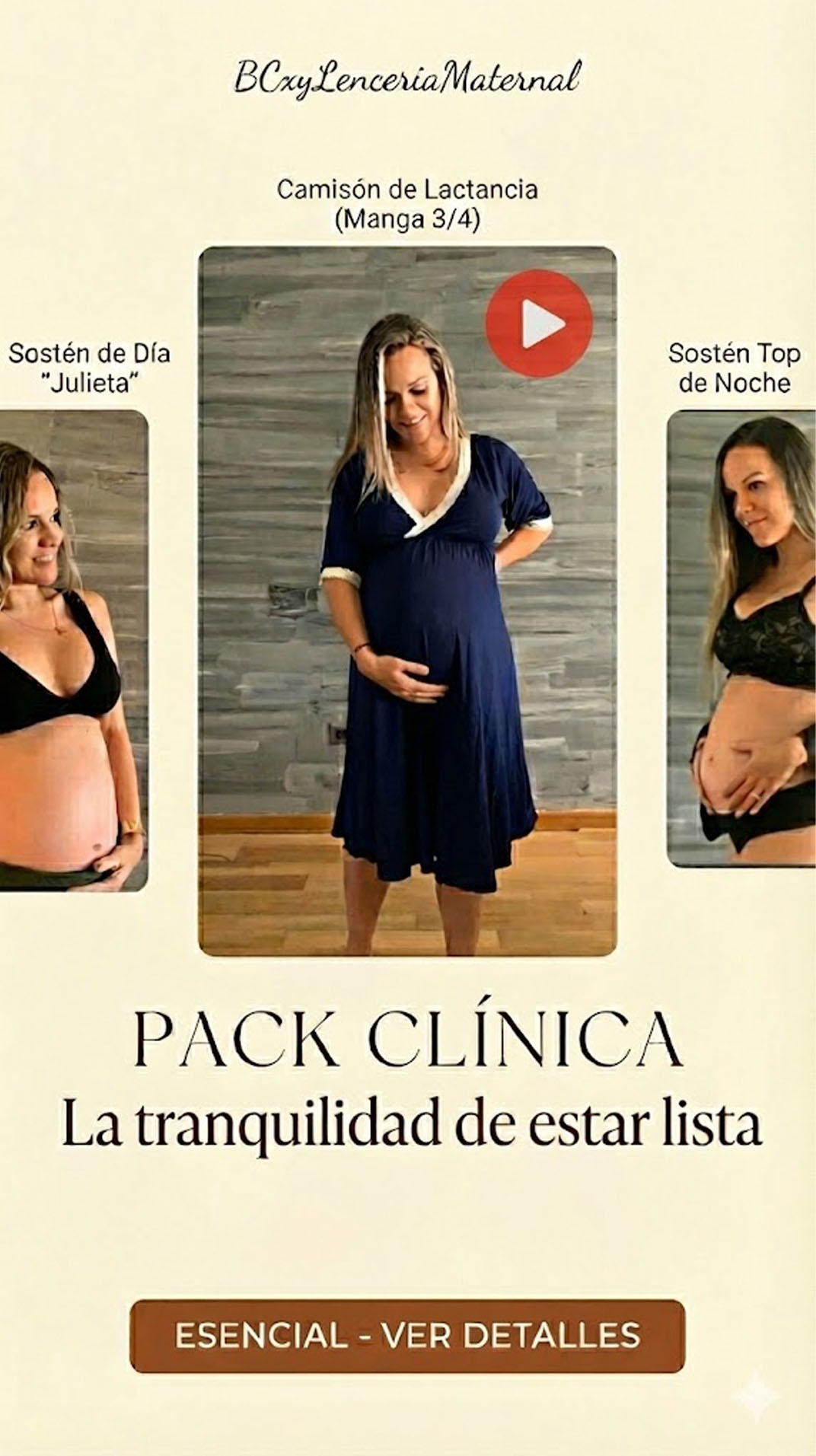Nuestro Pack esta compuesto por un camison Manga TresCuarto, 100% algodon, con escote con ligero traslape que permite una lactancia facil, pliegue en la cintura que permite que tu barriguita crezca sin problemas, el camison en un basico para el dia mas esperado, se vuelve inseparable.