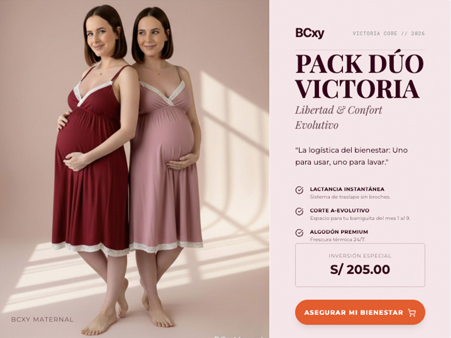 En BCxy, sabemos que la preparación para el parto y los primeros meses de lactancia son momentos de máximo cambio. El Pack Dúo Victoria no es solo una oferta; es la solución estratégica para tu maleta de clínica y tu recuperación en casa. Al elegir este set de dos unidades, aseguras tener siempre una prenda limpia, fresca y lista para usar, mientras la otra está en el ciclo de lavado.
