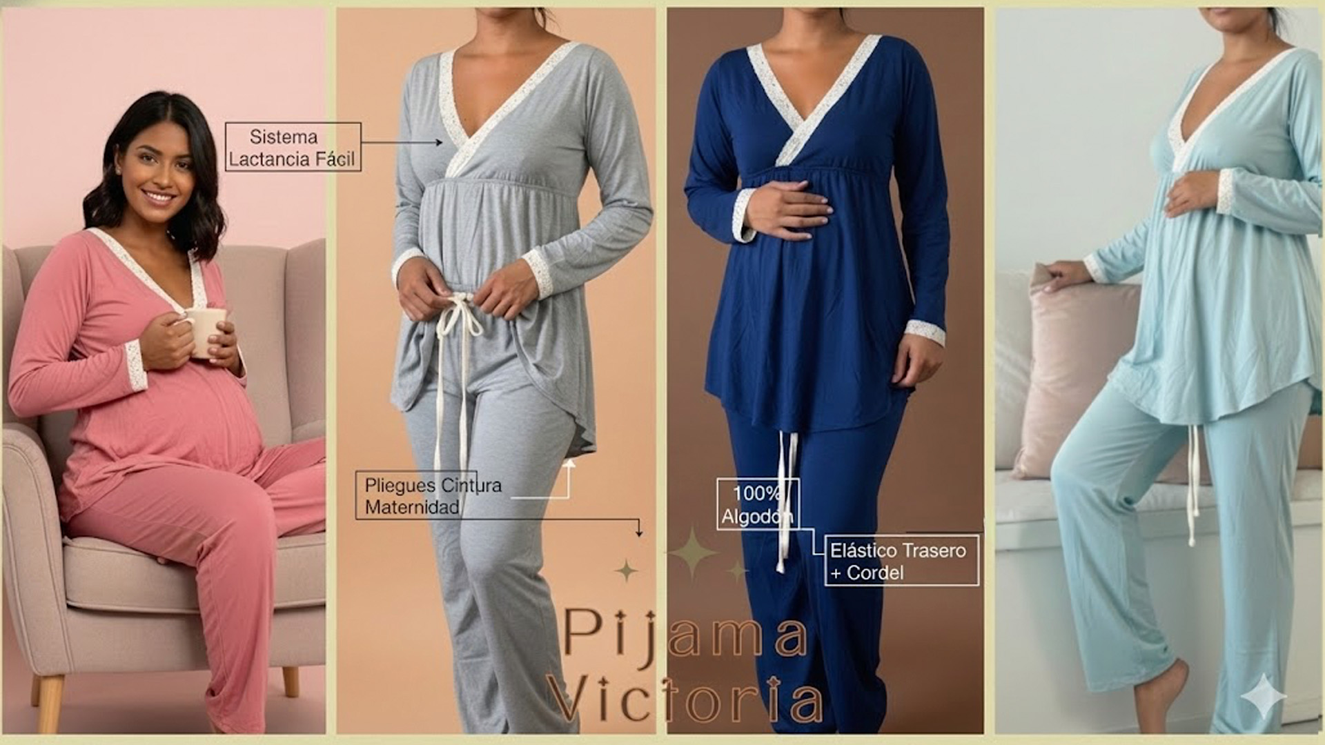 El pantalón, con elástico en la espalda y pitas ajustables en la parte delantera, garantiza un ajuste perfecto y cómodo. Su corte bajo en V es especialmente pensado para mujeres que han pasado por una cesárea. Confeccionadas en algodón, estas pijamas están disponibles en tallas Medio y Grande, y ofrecemos una variedad de colores para que elijas tu preferido. ¡Viste con estilo y confort durante el embarazo y la lactancia! 🌙🌈💕