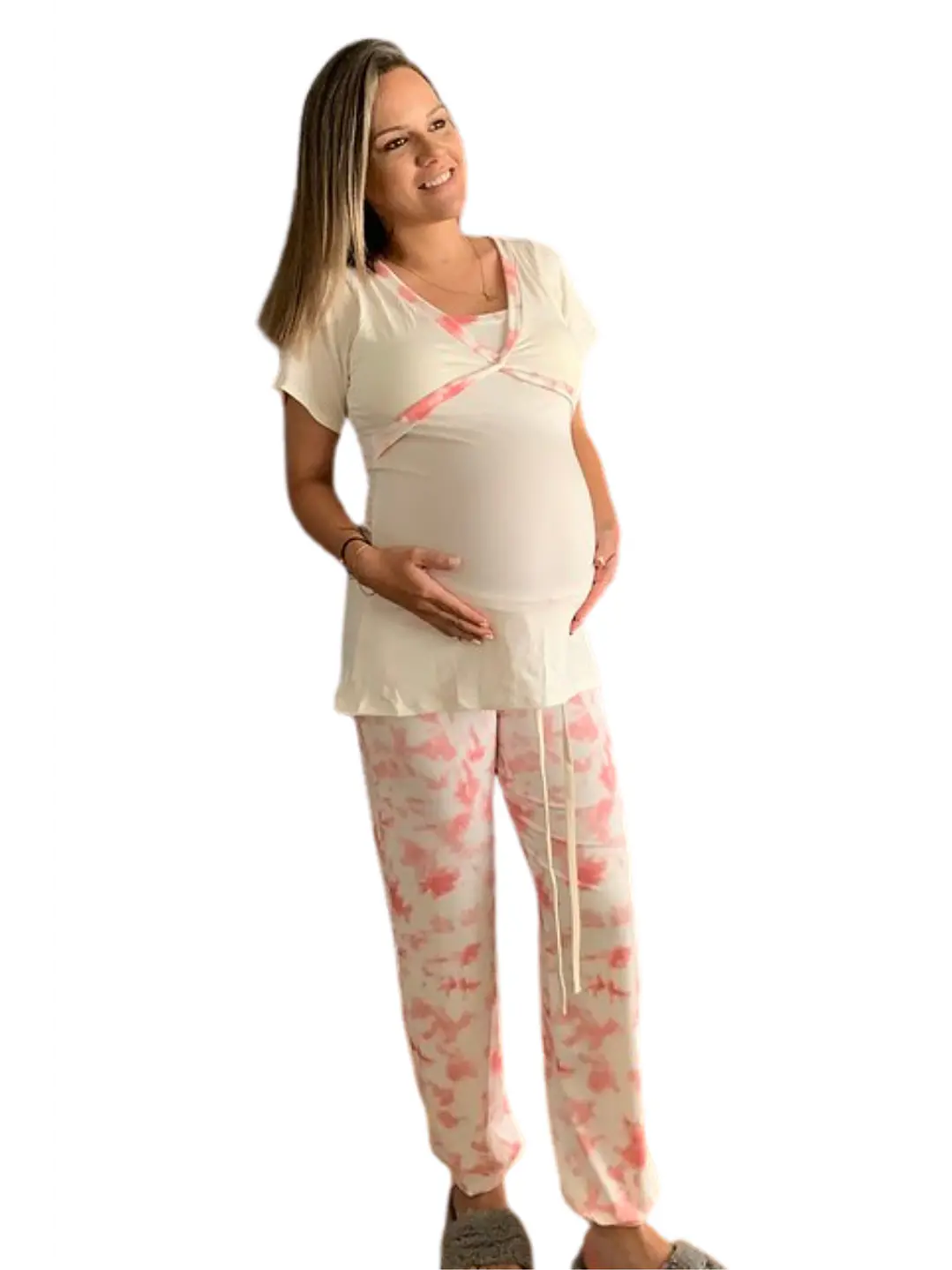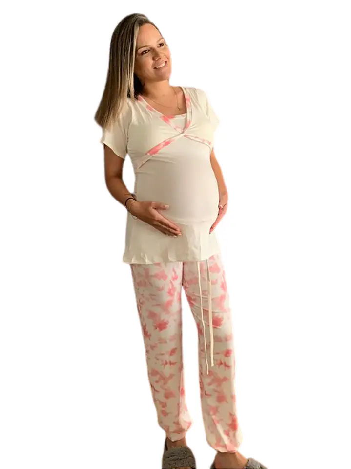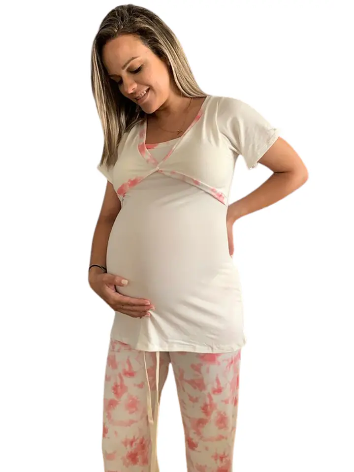 Pijama Maternal Cruzada Manga Corta: Dual-Skin & Algodón Pima