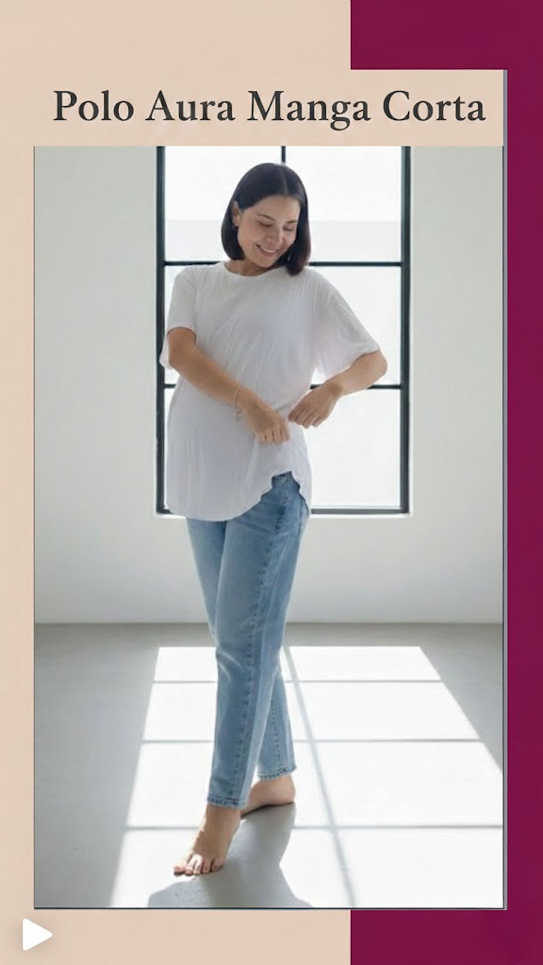 Su diseño con cuello en U estiliza el escote, mientras que su corte fluido y elástico se adapta al crecimiento de tu barriga desde el primer mes. Lo mejor: gracias a su tecnología de recuperación textil, el polo mantiene su forma impecable en el postparto, convirtiéndose en tu prenda favorita por años. - Versatilidad 365: