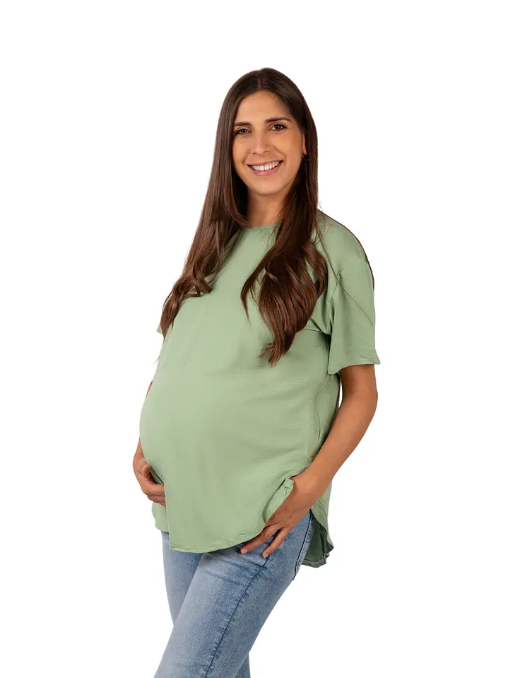 Su diseño con cuello en U estiliza el escote, mientras que su corte fluido y elástico se adapta al crecimiento de tu barriga desde el primer mes. Lo mejor: gracias a su tecnología de recuperación textil, el polo mantiene su forma impecable en el postparto, convirtiéndose en tu prenda favorita por años. - Versatilidad 365: