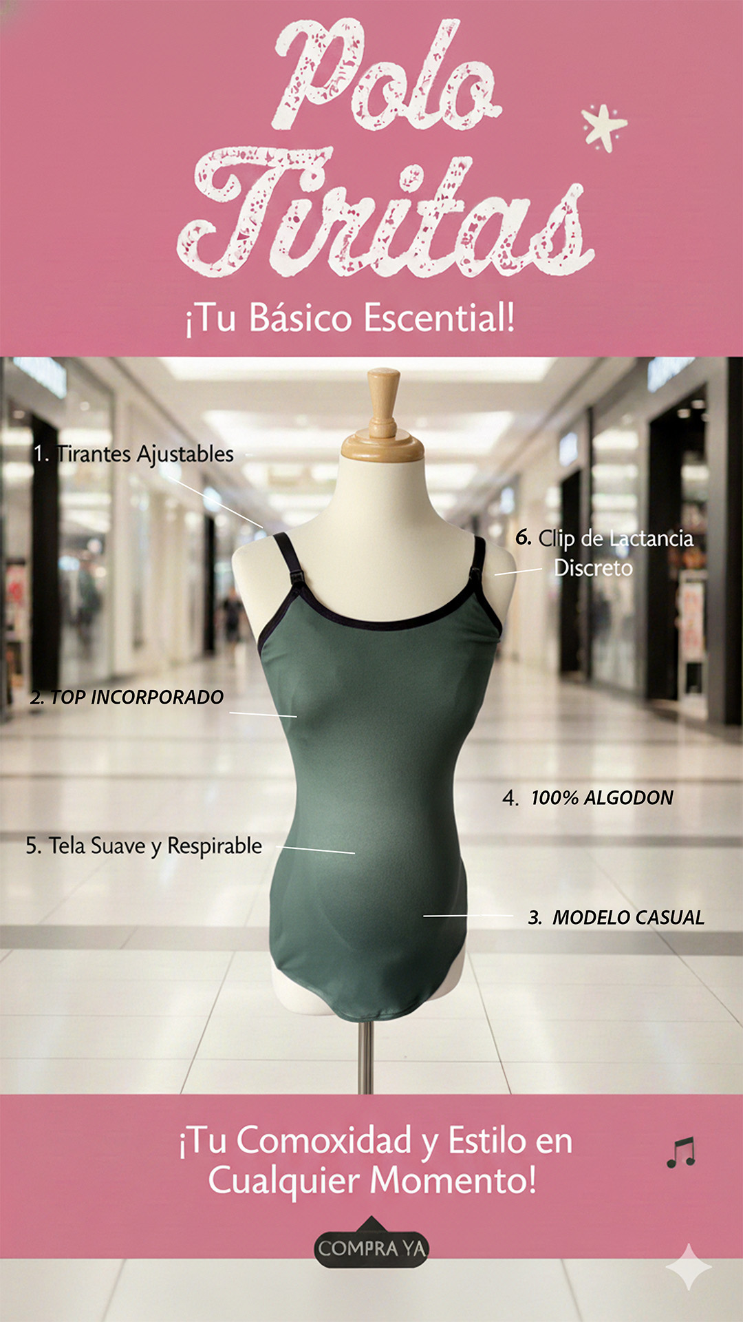 ¡Explora nuestro Polo de Tiritas, una prenda versátil para todo el año! Fabricado con algodón de alta calidad, este polo es ideal para usar sin sostén gracias a su top interno incorporado. Perfecto para el verano y como capa interior en invierno, te brinda comodidad y soporte sin comprometer tu estilo. Con tirantes regulables, es la opción perfecta para sentirte cómoda y a la moda en cualquier estación. ¡Descubre la versatilidad y el confort del Polo de Tiritas! 🌞❄️💐