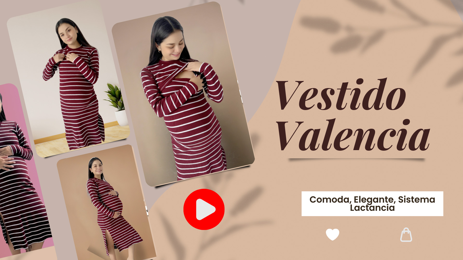 Vestido Maternal Valencia, Con Sistema Lactancia, RayadoGuinda